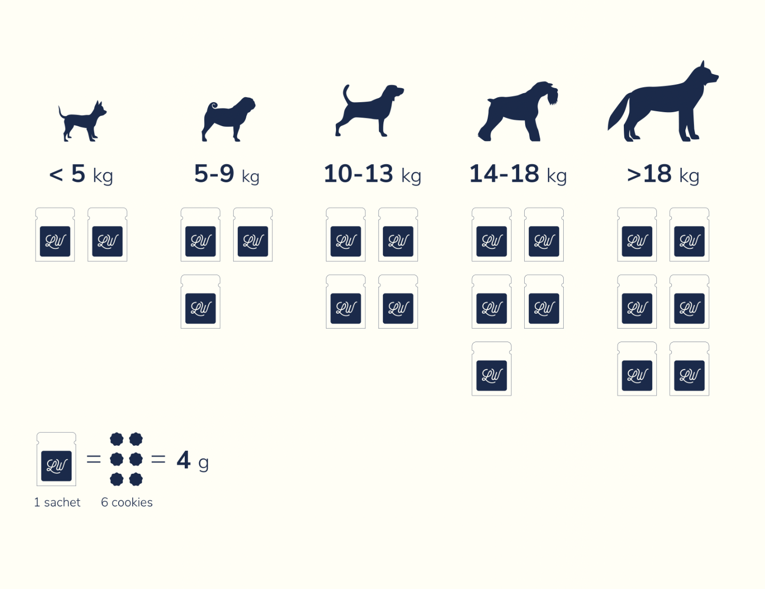 For dogs under 5Kg: a maximum of 2 sachets/day
