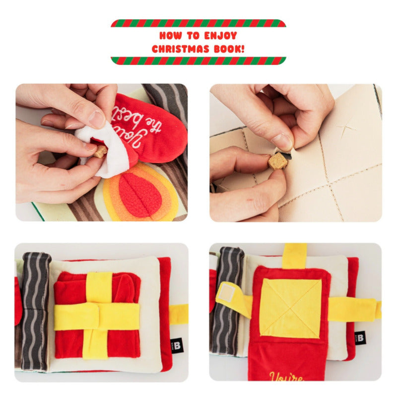 Christmas Playbook is filled with hours of play! Flip through explore those different challenges and earn your Christmas treats. Hide some treats in it and watch your furry friend have a sniffing good time with some tasty rewards!